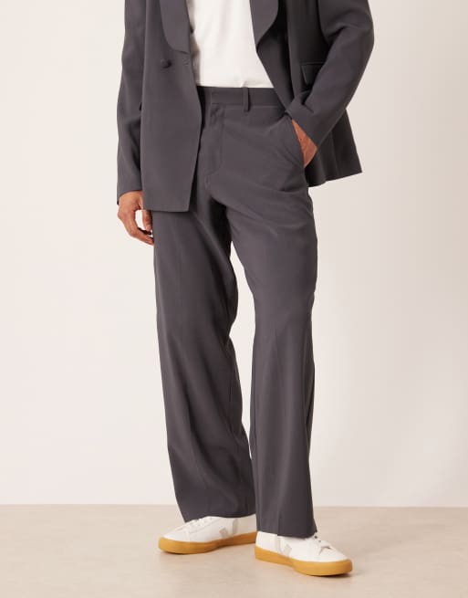 ASOS DESIGN – Grafitowe spodnie smokingowe z szerokimi nogawkami