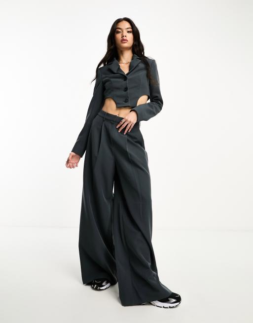 ASOS DESIGN – Grafitowe spodnie z szerokimi nogawkami i zaszewkami z przodu