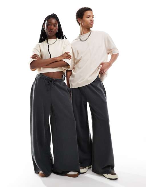 ASOS DESIGN – Grafitowe sprane joggersy unisex z bardzo szerokimi nogawkami