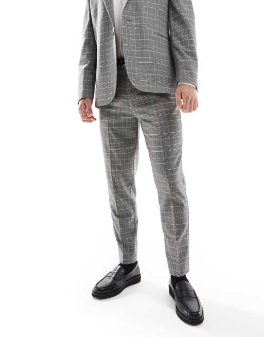 ASOS DESIGN – Grafitowe szczotkowane spodnie garniturowe o dopasowanym kroju w kratkę