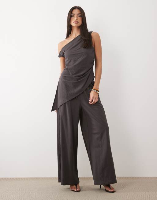 ASOS DESIGN – Grafitowoszary zestaw o lnianym wyglądzie