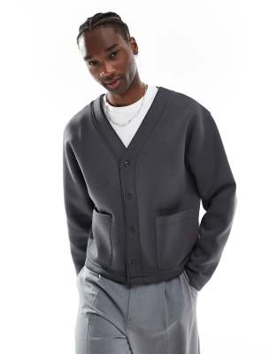ASOS DESIGN – Grafitowy kardigan oversize z materiału typu nurek