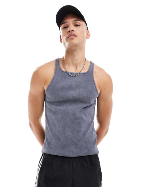 ASOS DESIGN – Grafitowy podkoszulek o kroju podkreślającym sylwetkę z efektem sprania