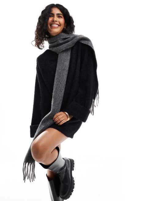 ASOS DESIGN – Grafitowy szalik z frędzlami z domieszką wełny