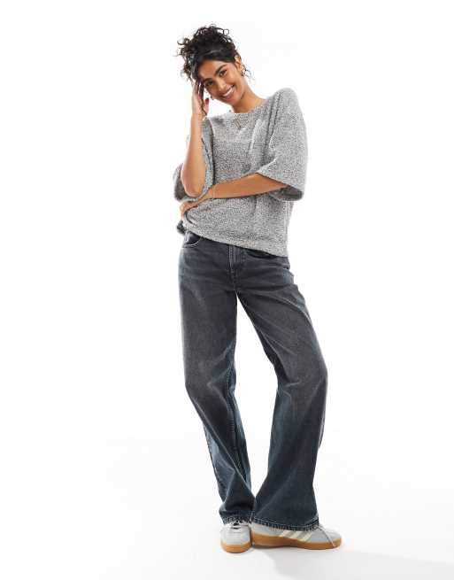ASOS DESIGN – Grafitowy T-shirt oversize z dzianiny boucle