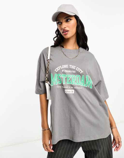 ASOS DESIGN – Grafitowy T-shirt oversize z grafiką z napisem „Amsterdam”