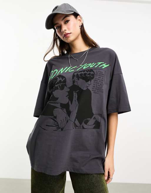 ASOS DESIGN – Grafitowy T-shirt oversize z licencjonowaną grafiką Sonic Youth