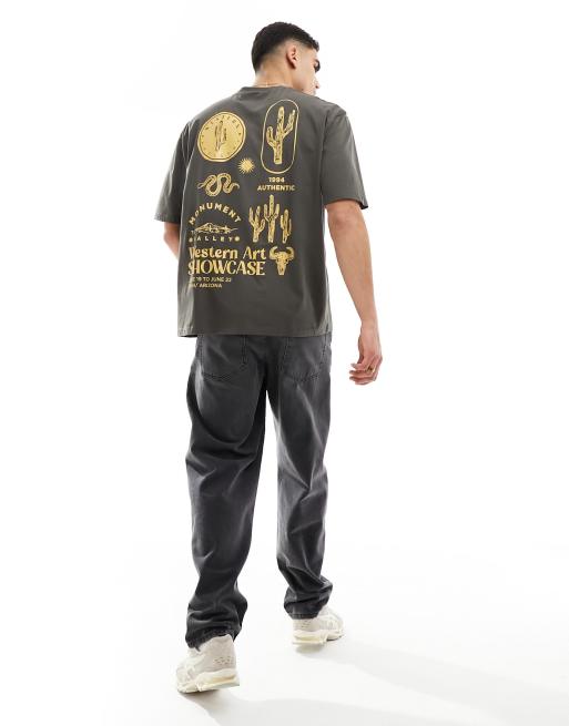 ASOS DESIGN – Grafitowy T-shirt oversize z nadrukiem z motywem krajobrazu na plecach