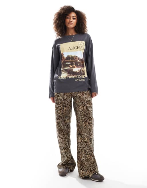 ASOS DESIGN – Grafitowy T-shirt typu skater z długimi rękawami i grafiką Los Angeles