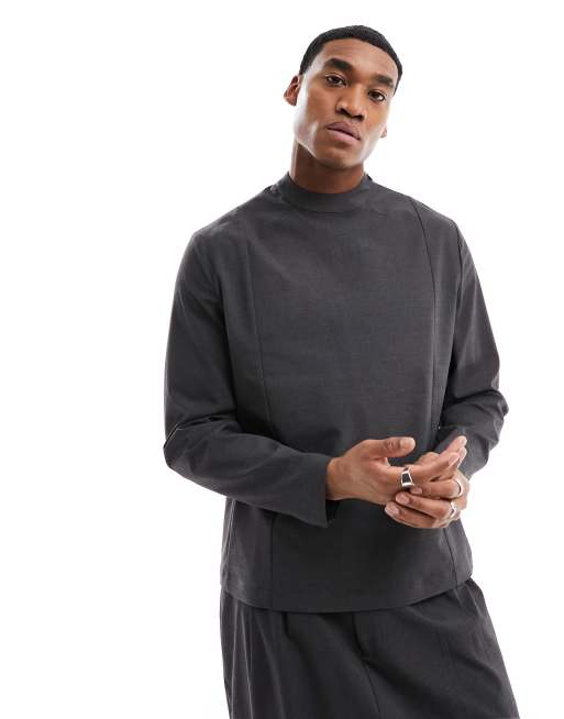 ASOS DESIGN – Grafitowy tkaninowy top garniturowy z długimi rękawami