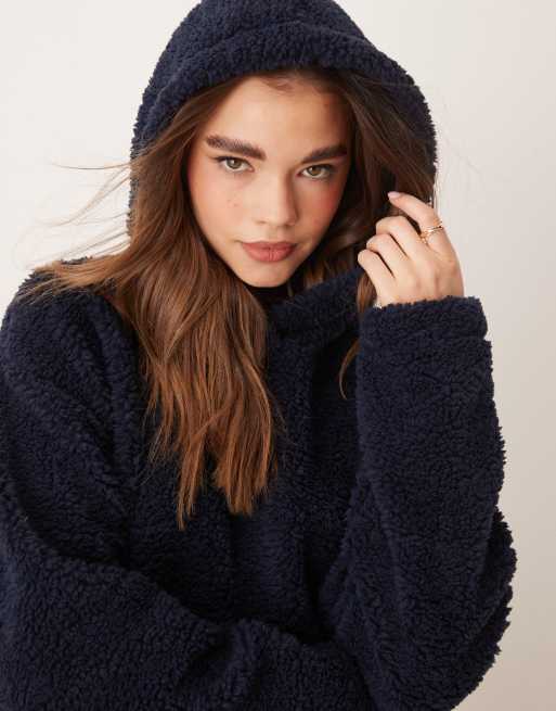 ASOS DESIGN – Granatowa bluza oversize z kapturem ze sztucznego kożuszka