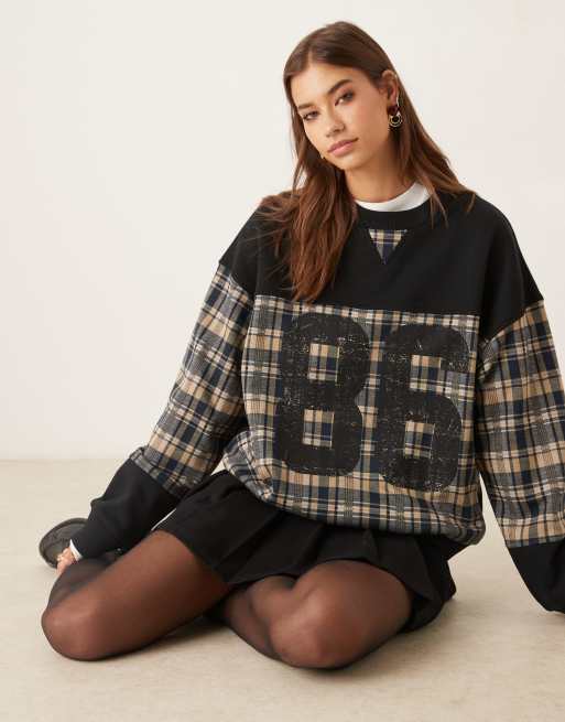 ASOS DESIGN – Granatowa bluza w kratkę z nadrukiem 86