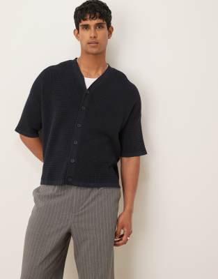 ASOS DESIGN – Granatowa dzianinowa koszula oversize z zapięciem na guziki