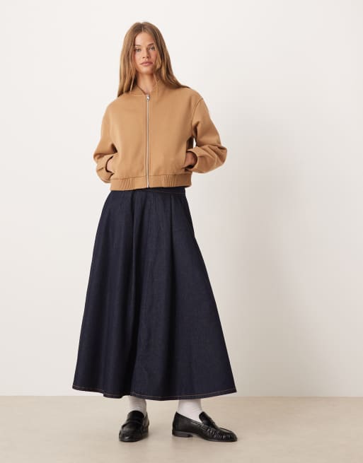 ASOS DESIGN – Granatowa jeansowa plisowana spódnica z koła