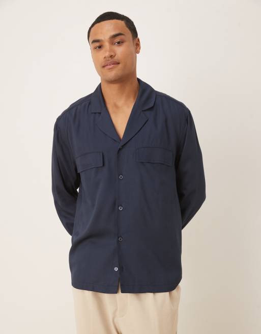 ASOS DESIGN – Granatowa koszula o luźnym kroju z kołnierzykiem kubańskim