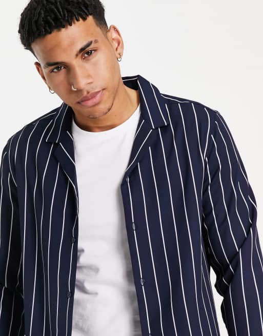 ASOS DESIGN – Granatowa koszula o regularnym kroju w paski