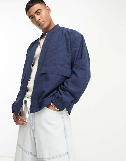 ASOS DESIGN – Granatowa kurtka bomberka oversize z krepy