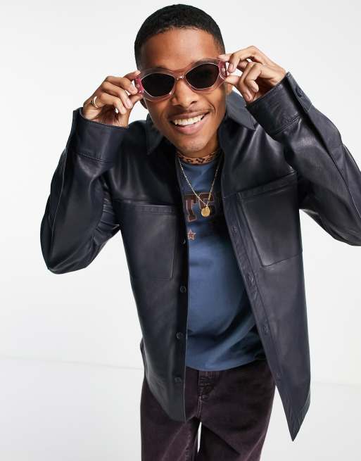 ASOS DESIGN – Granatowa kurtka koszulowa oversize z naturalnej skóry