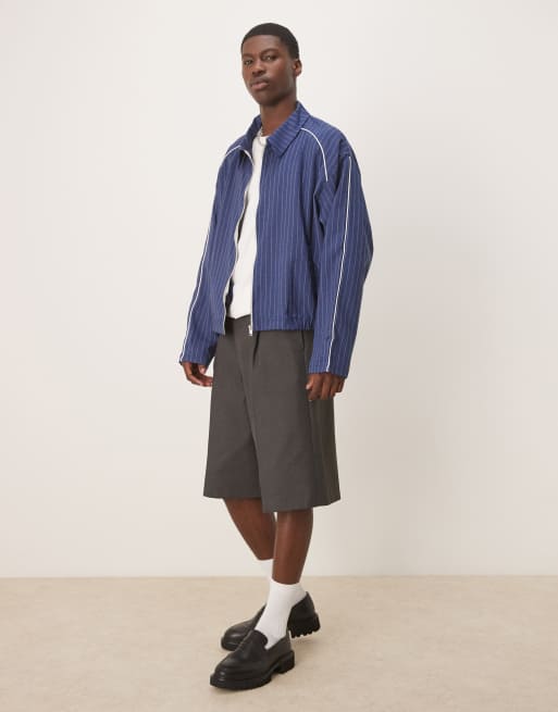 ASOS DESIGN – Granatowa kurtka oversize typu coach w prążki