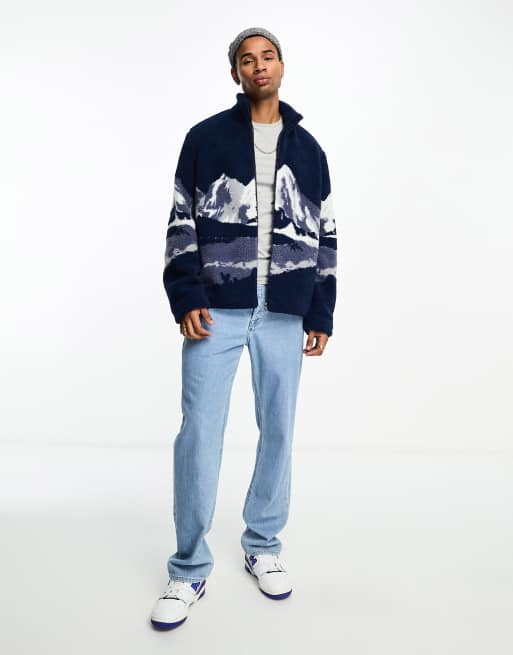 ASOS DESIGN – Granatowa kurtka oversize z kożuszka w krajobrazowy wzór
