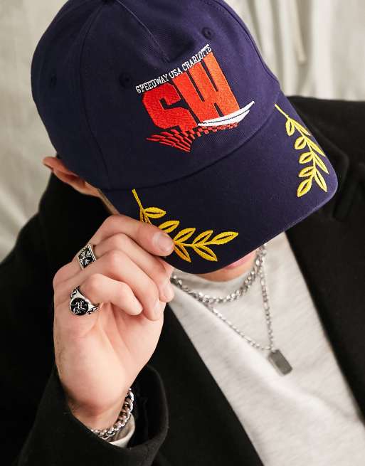 ASOS DESIGN – Granatowa miękka czapka baseballowa z daszkiem z haftem na daszku