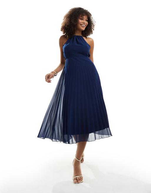 ASOS DESIGN – Granatowa plisowana sukienka midi z szyfonu z dekoltem typu halter
