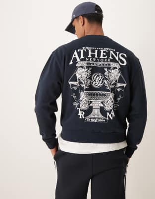 ASOS DESIGN – Granatowa pudełkowa bluza z nadrukiem z motywem miasta i okrągłym dekoltem