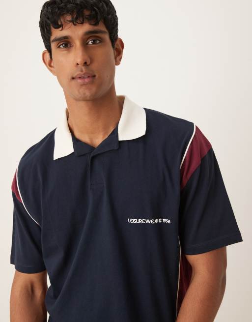 ASOS DESIGN – Granatowa pudełkowa koszulka polo oversize z nadrukiem na piersi