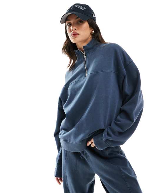 ASOS DESIGN – Granatowa sprana bluza oversize z zamkiem pod szyją