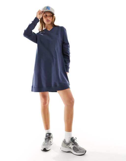 ASOS DESIGN – Granatowa sukienka dresowa mini z dekoltem w szpic i długimi rękawami