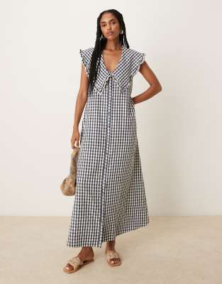 ASOS DESIGN – Granatowa sukienka maxi bez rękawów z kołnierzem w kratkę vichy