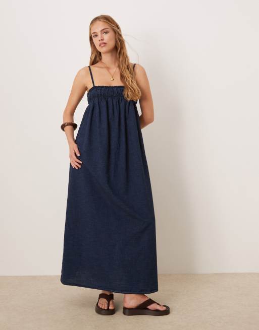 ASOS DESIGN – Granatowa sukienka maxi z miękkiej dzianiny z marszczeniem w biuście