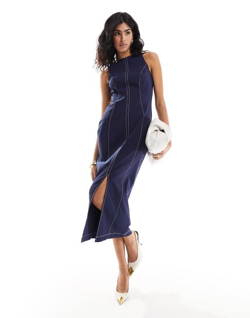 ASOS DESIGN – Granatowa sukienka midi z ozdobnymi szwami