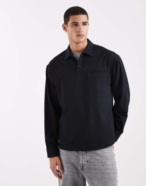 ASOS DESIGN – Granatowa zakładana przez głowę koszula w stylu rugby o kroju oversize