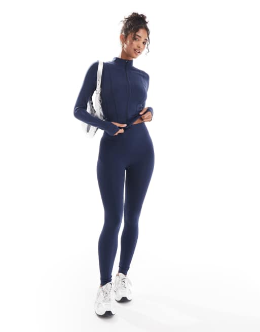 ASOS DESIGN – Granatowe, bezszwowe legginsy o modelującym fasonie, z widocznym szwem, część zestawu