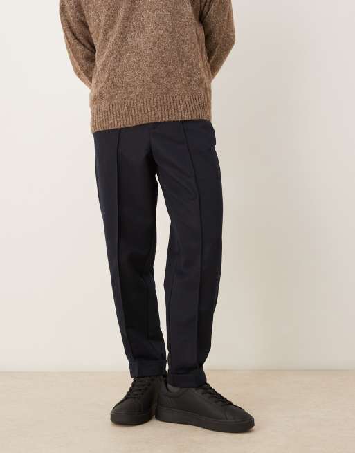 ASOS DESIGN – Granatowe eleganckie spodnie o zwężanym kroju z podwijanymi nogawkami