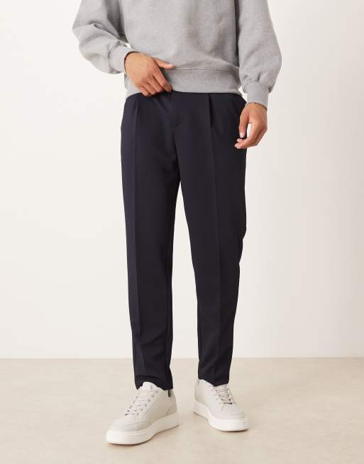 ASOS DESIGN – Granatowe eleganckie zwężane spodnie z elastyczną talią