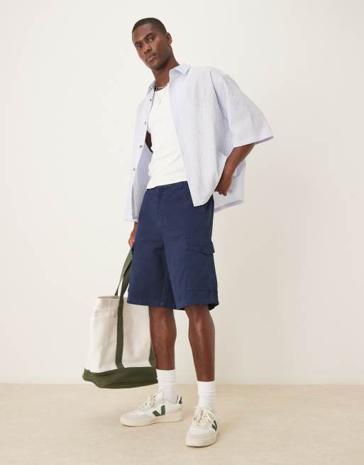 ASOS DESIGN – Granatowe szorty bojówki o wydłużonym fasonie