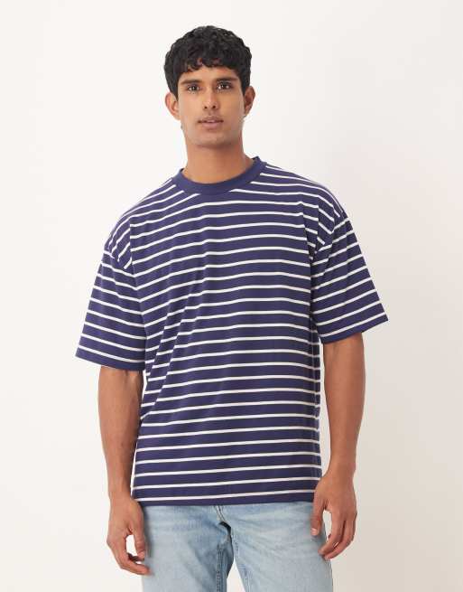 ASOS DESIGN – Granatowo-biały luźny T-shirt w paski