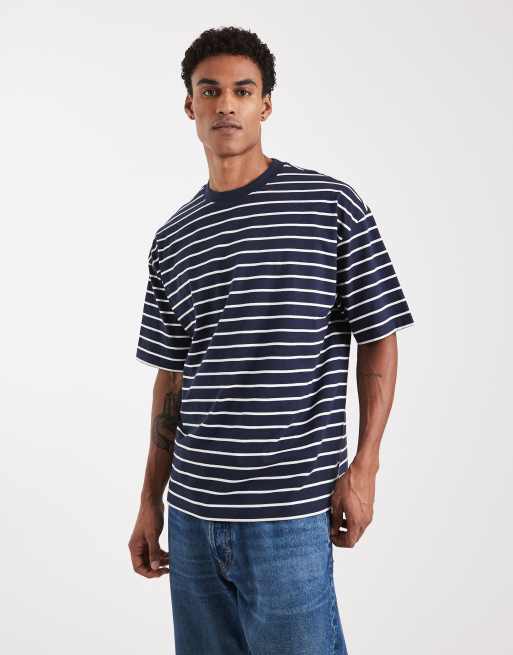 ASOS DESIGN – Granatowo-biały T-shirt oversize w paski
