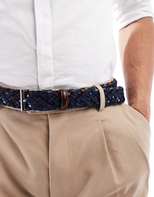 ASOS DESIGN – Granatowo-brązowy pleciony pasek z elastycznej imitacji skóry i materiału