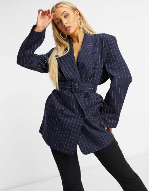 ASOS DESIGN – Granatowy blezer w prążki z paskiem