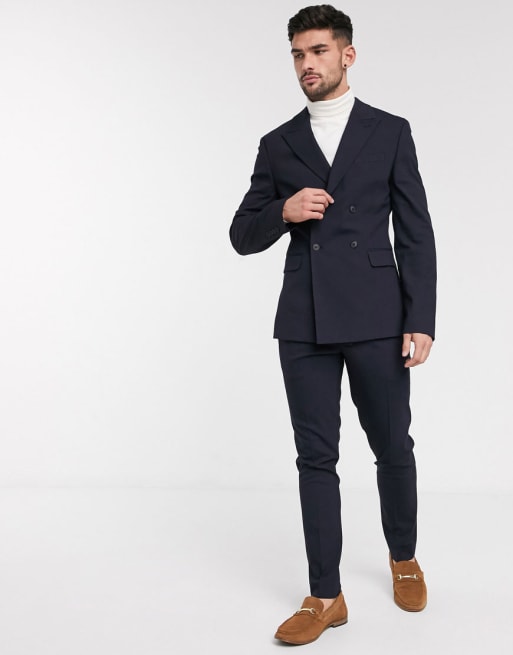 ASOS DESIGN – Granatowy dwurzędowy garnitur o obcisłym kroju