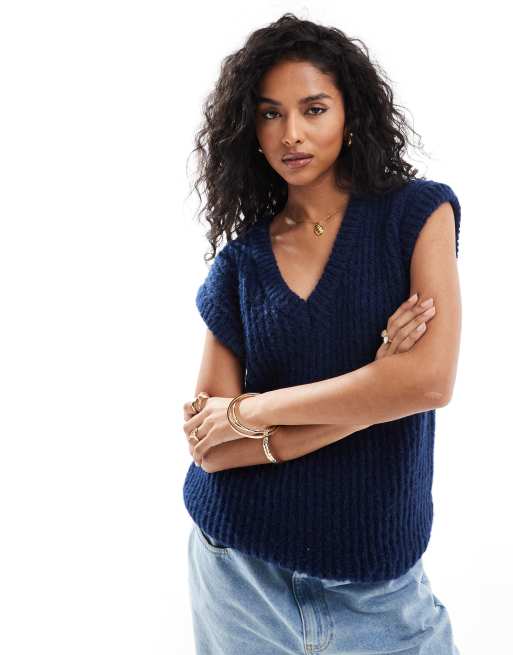 ASOS DESIGN – Granatowy podkoszulek z puszystej przędzy z dekoltem w szpic