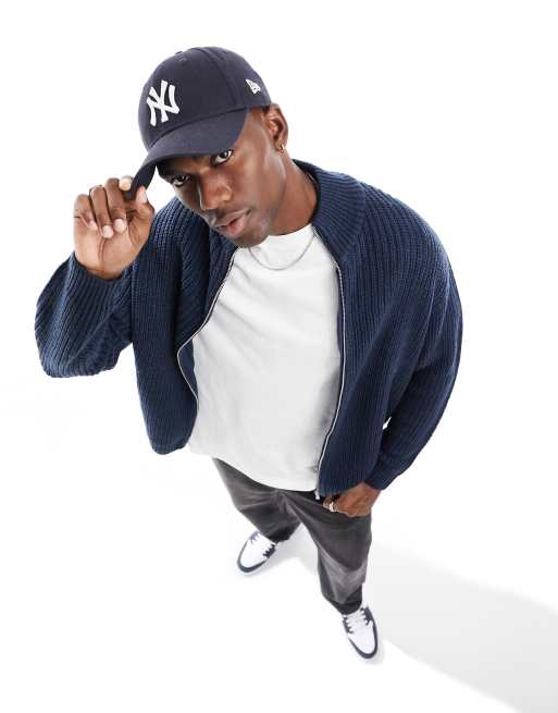 ASOS DESIGN – Granatowy prążkowany zapinany na zamek sweter oversize z dzianiny o splocie angielskim