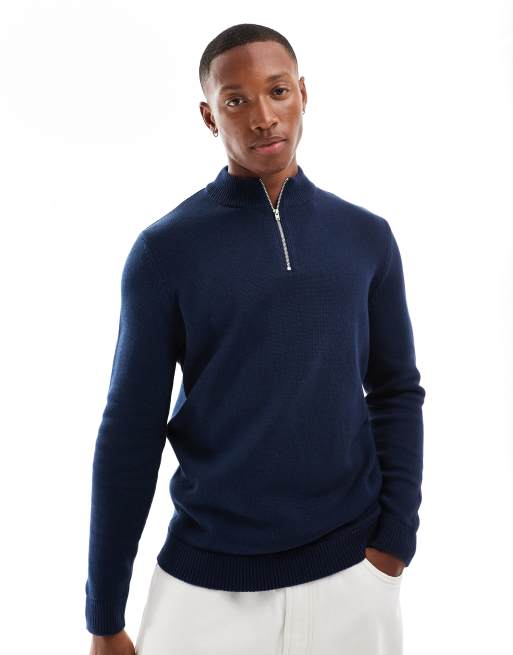 ASOS DESIGN – Granatowy średniej grubości sweter dzianinowy z suwakiem pod szyją