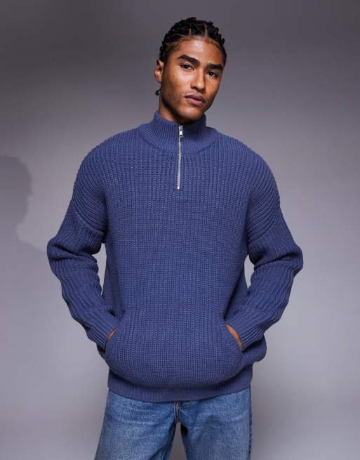 ASOS DESIGN – Granatowy sweter oversize z grubej dzianiny, z zamkiem pod szyją