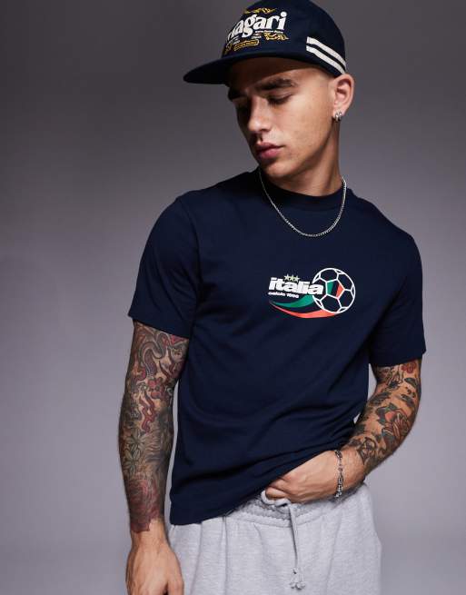ASOS DESIGN – Granatowy T-shirt o pudełkowym kroju ze sportową grafiką Italia