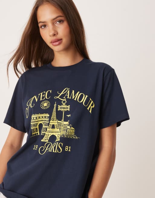ASOS DESIGN – Granatowy T-shirt o regularnym kroju z grafiką z napisem „L'amour Paris”