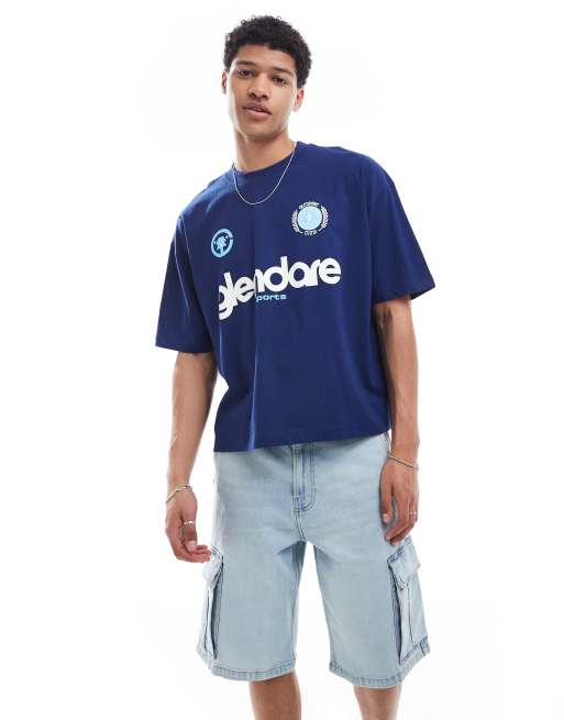 ASOS DESIGN – Granatowy T-shirt oversize o pudełkowym kroju ze sportową grafiką